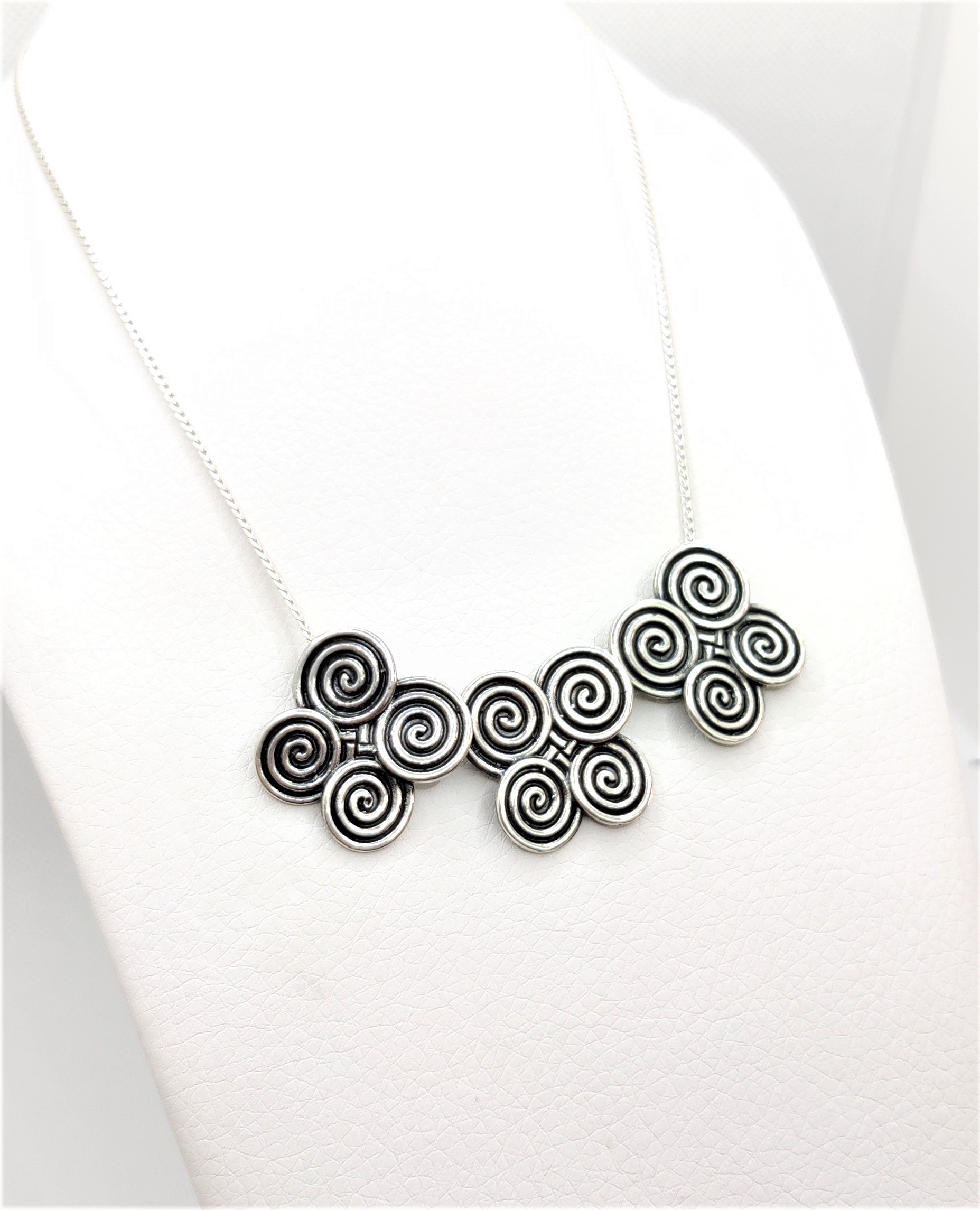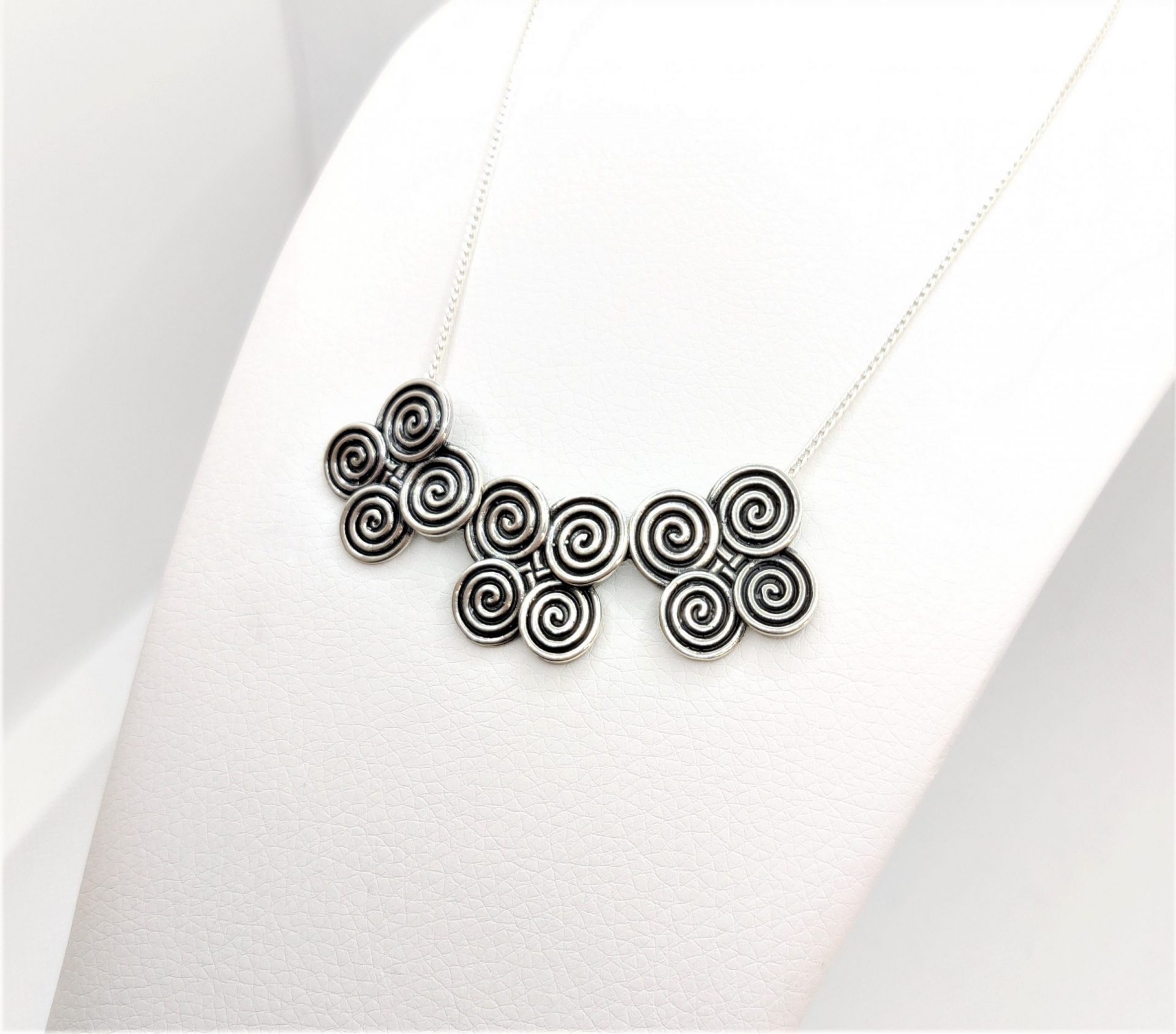 Κολιέ με χαραγμένο τετραπλό μοτίφ σπείρας. Ένα σχέδιο που ενδυναμώνει την αέναη κίνηση του αρχαϊκού συμβόλου της ζωής