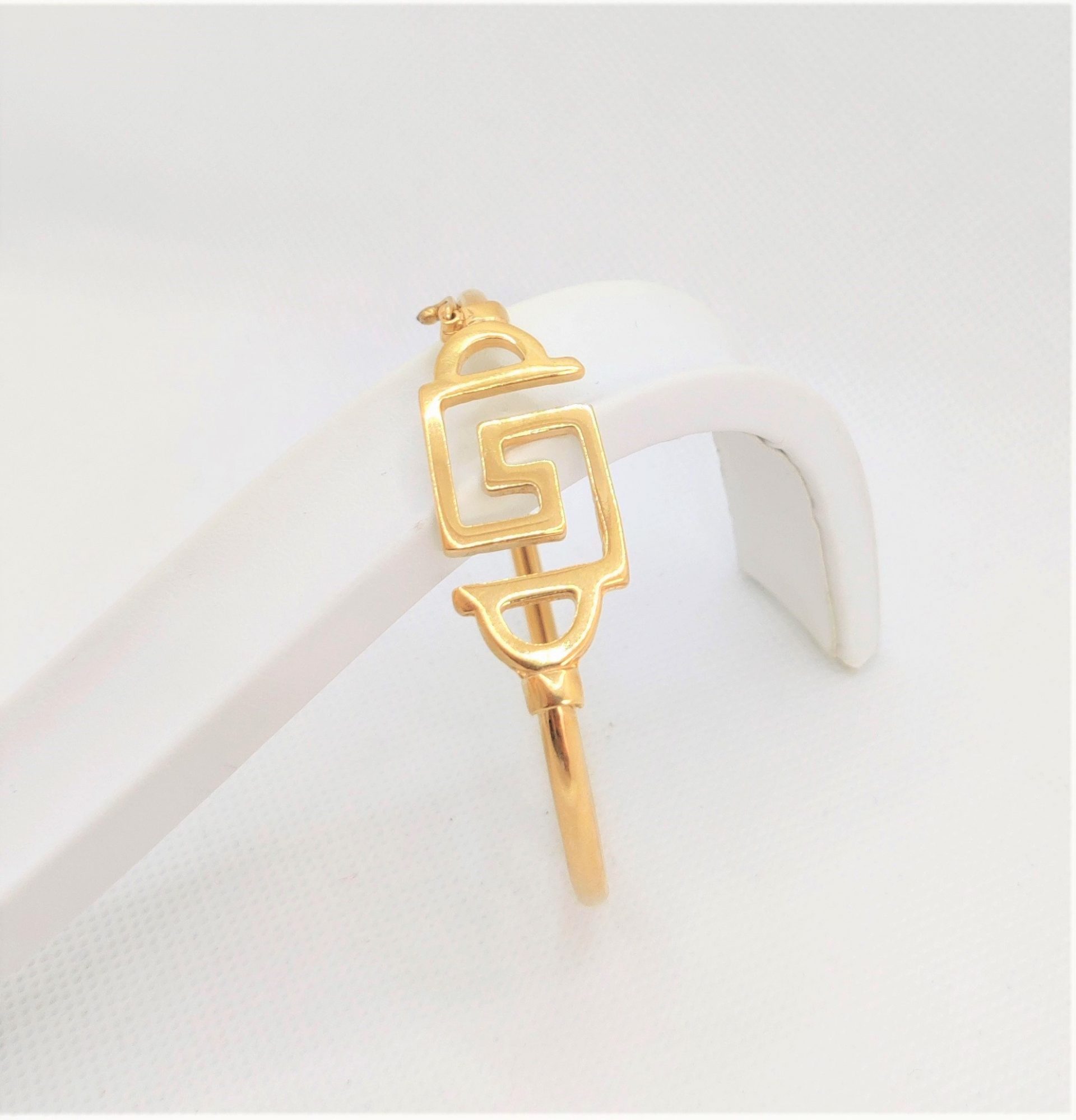 Handcuff bracelet with a abig motif of meander. Minimal, modern, chic and still a historic symbol of the greek civilization