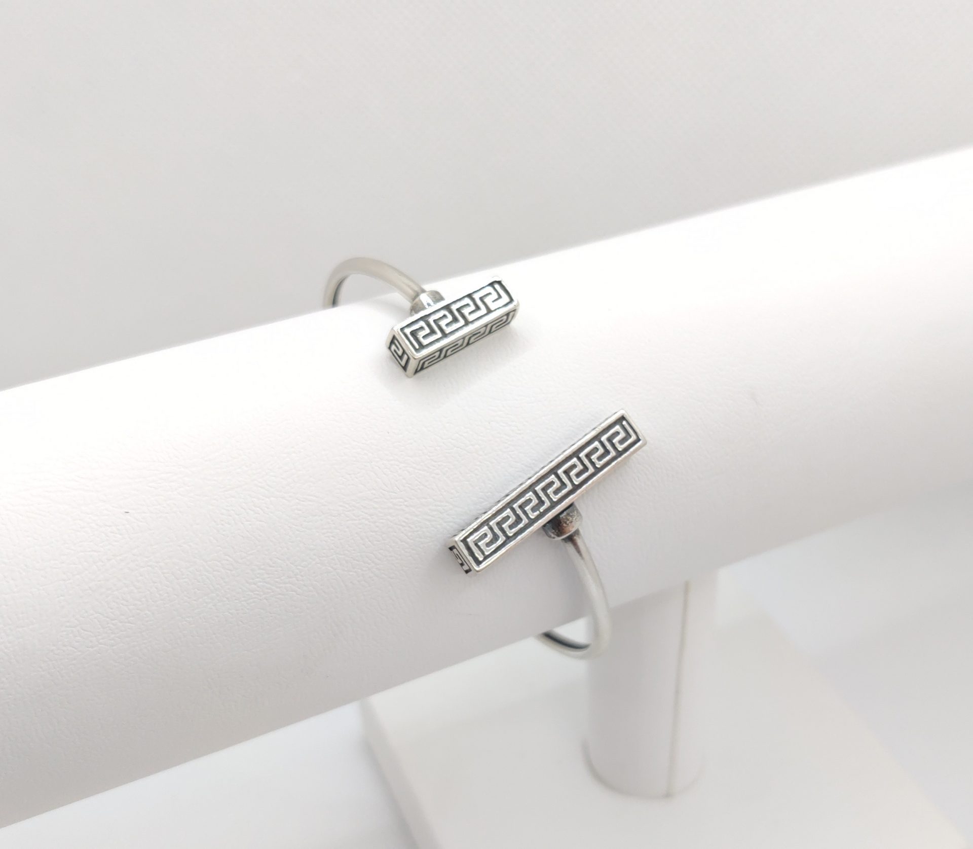 Silver bracelet with parallel motifs of meander of different size each. Original and remarkable. Both for women and for men